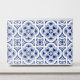 This product has an intricate design with a dark blue background and white ornamental patterns. The design is reminiscent of traditional ceramic or porcelain styles, which may interest those who appreciate classic or vintage aesthetics.