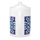 This product has an intricate design with a dark blue background and white ornamental patterns. The design is reminiscent of traditional ceramic or porcelain styles, which may interest those who appreciate classic or vintage aesthetics.