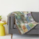 A quality printed throw has its advantages. This is a much finer weave throw than its loopier cousins, and though lighter, it is worth the investment for custom room accessorizing. The back is much prettier than the typical brown, and the fringe on the long sides very vivid, the selvage nicely done. Before photographing, I washed the throw in cold water, delicate, with a thicker woven throw the same size. On tumble dry low, this throw was dry in half the time as the other. This is a very practical quality if you use throws for furniture covers or to wrap up in frequently. The sleekness of the fabric makes it a great layer for accenting or protecting without the feeling of sitting on too much stuff. Perfect for napping or when you feel a light chill coming on. The color printing is beautiful and on this fabric, matched the design and color of my Photoshop image. This is an advantage for blending room fabrics and colors. The fringe on the short sides prints the colors from the design image and therefore varies from the side fringe. I streaked a white fractal line through the plaid pattern to give the illusion of weaving. This printed as crisp as an illusory thread, and put some white in the short side fringe, showing another advantage of print vs loomed- for artistic purposes, line lines, detail, and color integrity can be planned and preserved. My loomed throws have color limitations and more of a needlepoint texture. Print throws reproduce an exact image. The throw felt a little stiff straight out of the package, but this went away in the first delicate wash. Of course I searched the wash water for ink or bleeding and there was none.