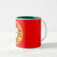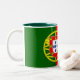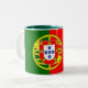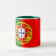 One half of the mug features the red portion of the flag, while the other half shows the green, with the Portuguese coat of arms in full detail centered on the design.