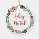 Portuguese Merry Christmas Wreath, Feliz Natal Ceramic Ornament