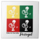 The pattern is simple, reminiscent of the play of shapes and colors on Portuguese tablecloths from years ago. It may please anyone who likes Portuguese colorful clay-painted roosters or Portuguese popular culture. It can be a good birthday present. It is also always suitable for wishing someone good luck as the Barcelos rooster is a symbol of good luck, justice, honesty, and truth. The text is customizable.