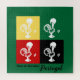 The pattern is simple, reminiscent of the play of shapes and colors on Portuguese tablecloths from years ago. It may please anyone who likes Portuguese colorful clay-painted roosters or Portuguese popular culture. It can be a good birthday present. It is also always suitable for wishing someone good luck as the Barcelos rooster is a symbol of good luck, justice, honesty, and truth. The text is customizable.
