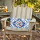 This design features a colorful pattern inspired by Portuguese azulejo tiles in blue, white and orange. Ideal for adding a splash of summer color to your patio, porch or deck!