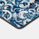 This product has an intricate design with a dark blue background and white ornamental patterns. The design is reminiscent of traditional ceramic or porcelain styles, which may interest those who appreciate classic or vintage aesthetics.