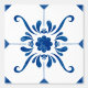 This product has an intricate design with a dark blue background and white ornamental patterns. The design is reminiscent of traditional ceramic or porcelain styles, which may interest those who appreciate classic or vintage aesthetics.
