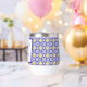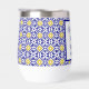 Portuguese tiles, blue, white and yellow pattern, rustic Azulejo, Mediterranean Bridal shower wine tumbler. Personalize it with your details.