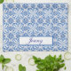 Portuguese tiles, Mediterranean kitchen towel. Rustic, boho, vintage tiles, blue, botanical artwork. Please personalize it with your name.