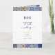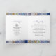 A modern yet rustic Mediterranean Portuguese tiles pattern wedding design. A colorful Mediterranean themed design that uses different vintage tile designs to create an elegant summer wedding design. A charming Portuguese, Italian and Spanish influenced Mediterranean tiles design using classy script typography. An elegant Portuguese tiles themed wedding order of service program card design with modern elements. Matching wedding invitations and other stationery items are also available.