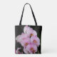 Posh pastel pink orchids are a lovely accent on sturdy tote bag. Make a warm fashion statement with this floral print tote!
