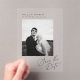 Our clear acrylic save the date card features an offset photo with side swept modern calligraphy - the perfect way to notify your family and friends of your upcoming wedding.