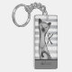 Sophisticated cat on striped background, personalised keychain for cat lovers.