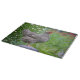 This cutting board features a barred rock hen posing on a wooden mushroom in a herb garden in Connecticut