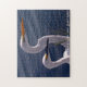This Jigsaw Puzzle is an original photograph by ZoeSPEAK of two white, long necked shore birds posing by the deep blue waters of the ocean. The bird with the long, pointed black beak is a snowy egret. The bird with the long, pointed yellow orange beak is a great egret. There is text identifying the birds at the lower corner of the puzzle. This is set for you to personalize or delete if you prefer.