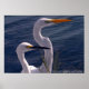 This Poster is an original photograph by ZoeSPEAK of two white, long necked shore birds posing by the deep blue waters of the ocean. The bird with the long, pointed black beak is a snowy egret. The bird with the long, pointed yellow orange beak is a great egret. There is text identifying the birds at the lower corner of the poster. This is set for you to personalize or delete if you prefer.