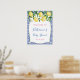 Watercolor lemons and pretty blossoms against a background of cobalt blue and white tile pattern for this stylish Bridal or Baby Shower welcome sign.