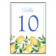 Vibrant yellow watercolor lemons accented with powder blue and cobalt blue decorate these party table numbers. With regards to the pale blue frame / border, you can change the color of this by changing the border color of the rectangle layer on each side (enter the design tool by clicking / tapping to personalize further). ****Please be aware that you will need to change the number on each card and add separately to your cart***