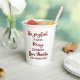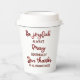 This paper cup has fancy script text that says, "Be joyful always. Pray continually. Give thanks in all circumstances". This would be a great cup to have at your Bible study, youth group meeting or at any gathering with a focus on religion or spirituality. Other such items are in my "Spiritual Inspiration and Encouragement" collection.