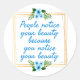 This product is made of a durable material that sticks to my boutique bags easily. The product is shiny so my customers notice it. This product gets a 5 out of 5! I love it! The printing is perfect and the design I chose almost looks like glitter at the top. What a great addition to my boutique bags! Now customers are reminded where they shopped and might come back to shop with me again at Crystal Threads. The print quality is a 5 out of 5, and looks beautiful!