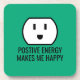 Positive Energy funny green wall plug socket beverage coaster . Custom color drink coasters with smiling electrical outlet. Personalize with custom text and colors.