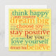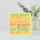 Colorful Positivity to send someone with this Word Art pattern of inspiring phrases in multicolors of red, yellow, orange, teal and purple with the motivational quotes, Believe, Choose joy, Think Happy, Dream Big, Stay Positive, Love Yourself and Be You, on a yellow background.