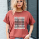 My 11 yo wore adult XL (5’7” 165#). The 8yo is small framed. She wore adult small and tied it in the back. Grandma wore adult large with long sleeve shirt underneath. Tall girl adult medium. Dark haired male adult large. Good quality dark Heather gray, Gildan brand shirt. -it was next up from basic choice and cost about $20 per shirt. Not too thick or thin. Washed and dried well, no major shrinkage. Not see-through. Can wear a bra under it fine. Screen print is just as shown and well done, front and back.