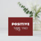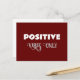 "Positive Vibes Only" – A gentle nudge to focus on the good and let go of negativity. This postcard is a simple reminder to embrace positivity and surround yourself with uplifting energy.