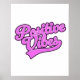 Positive Vibes vintage pink text in a retro style motivational quote.