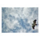 A photograph of an immature Bald Eagle soaring in the sky with the clouds.