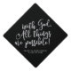 A classy and elegant graduation cap topper featuring the Bible verse Matthew 19:26 "with God, all things are possible" in white elegant hand lettered style script font. Personalize with your graduation details and click "customize" to edit the background color.