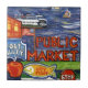 A colorful drawing of Post Alley and the Public Market sign above Puget Sound in Seattle's Pike Place Market.