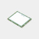 This post it note is shown with a pretty peacock feathers print and has a double border in colors of blue and green.