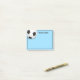 Post-it-Notes shown in a sky blue color with a sports soccer ball print.