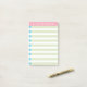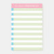 This customizable 4 x 6 inch Post-it® Notes template has green stripes with blue check-off boxes topped and a pink banner topper, enjoy!