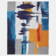 Loose, confident brushstrokes and geometric color fields give the piece a modern, painterly structure. The figures appear anonymous and universal, emphasizing shared experience rather than individuality. There is a sense of transition in the scene—between weather and calm, movement and pause—making the artwork emotionally resonant and quietly powerful.