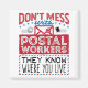 Funny mail carrier design for mailman or mailperson. Design says: Don't mess with postal workers we know where you live