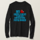 I love this shirt. I had written to the artist asking her if this picture was available on a shirt, and she wrote me back telling me where I could find the shirt. These shirts can be custom made to have a different saying. I loved this saying and went with it. The artist wrote me back later to tell me that she had seen my order go through. How's that for service? Pretty special. It's just as displayed. Perfect!