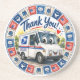 Pleased with the overall quality of this type of coaster. I bought a set of these and each one was packaged carefully in bubble wrap to protect from breakage. The coasters are very classy looking and fun to use. I would recommend to anyone. Printing is less bright than on other products such as say, magnets or mugs, but that's to be expected given that they are printed on sandstone. Somewhat dull, but true to how the product is represented on the Zazzle website. I am pleased with the quality and would order again. Would make a great gift.