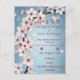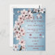 This beautiful wedding invitation showcases an elegant floral design featuring a delicate branch adorned with soft pink cherry blossoms. The light blush tones of the flowers and the gracefully curved dark branches exude romance and timeless beauty, making it the perfect choice for couples looking to celebrate their love in style.