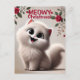 Spread holiday cheer with this delightful 'Meowy Christmas' postcard! This design features a white fluffy cat with bright, curious eyes, nestled in a cozy, festive scene with snowflakes gently falling around. The cat wears a cute red Santa hat, adding a touch of Christmas charm. The words 'Meowy Christmas' are playfully written in a warm, cheerful font, capturing the spirit of the season. Perfect for cat lovers and anyone who wants to send a cozy, feline-inspired holiday greeting to friends and family!
