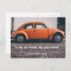 Send love To that old friend, that gold friend. Customise-able post card. Photograph with an orange beetle classic car