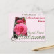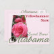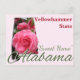 The camellia was designated the state flower of Alabama in 1959, replacing the original state flower, the goldenrod. There is much symbolism associated with the lovely camellia: gratitude, perfectionism, love, affection and admiration. This wonderful design is a tribute to this beautiful bloom and also pays homage to our wonderful 22nd state, Alabama. The mountainous northern region of Alabama, slopes to gentle plains which lead to the magnificent Gulf Coast in the southwestern corner of the state. One would think the humid, subtropical climate would make agriculture the state's primary industry -- but it's not. Although cotton was once king in the "Yellowhammer State", the aerospace and defense industries are the largest employers, followed closely by the state's magnIficent universities. Alabama seldom sees snow, which is ironic given that the camellia is sometimes called the "rose of winter". It was in winter, January 11, 1861, that Alabama declared its secession from the Union. After remaining an independent republic for a few days, it joined the Confederate States of America. The Confederacy's capital was initially at Montgomery. Alabama was heavily involved in the American Civil War. Although comparatively few battles were fought in the state, Alabama contributed about 120,000 soldiers to the war effort. However, it was during the Battle of Mobile Bay, in 1864, that Admiral David Farragut issued his famous command, "D@mn the torpedoes, full speed ahead." Alabama is nicknamed the Yellowhammer State, after the state bird. Alabama is also known as the "Heart of Dixie" and the Cotton State. Few people know that Alabama is also the home of the 157th recognized impact crater on the entire planet. A five-mile-wide meteorite impact crater is located in Elmore County, just north of Montgomery. The Wetumpka crater is the site of "Alabama's greatest natural disaster." A one-thousand-foot-wide meteorite hit the area about eighty million years ago. This delightful design, celebrating the 22nd addition to the United States, offers an outline of the state of Alabama, filled with their state flower, the lovely camellia accented by the state's nickname and the familiar "Sweet Home" often associated with Alabama . . . as well as the state's name. The reverse side has been left (essentially) blank for your thoughts, featuring only a repeat of the state name image. These wonderful postcards make an excellent addition to your selection of Alabama souvenirs and memorabilia.