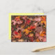 Postcard, with photo of colorful fall leaves on front; pale yellow on back