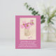 Pink inspirational postcard with an picture of pink flowers in a bottle and the text:“Being happy doesn't mean that everything is perfect. It means that you've decided to look beyond the imperfections.”