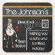 Postcard Chalkboard Vintage Snowman - Blue Square Paper Coaster
