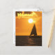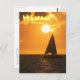 Send a portrait-formatted postcard greeting of a catamaran sailing out on the ocean beneath a gorgeous copper-colored sunset off the Waikoloa coast of the Big Island of Hawaii. "Hawaii", "Waikoloa", and back text is customizable: change wording, change fonts, change size, change colors, reposition it, or remove it completely.