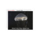 This photo of a white crystal jelly, Aequorea victoria, was taken (after lots of tries!) by me through the glass at the Monterrey Bay Aquarium, Monterrey, CA. It shows the upside down bowl-shaped, whitish jellyfish body against a black background. The curve of the bowl is almost transparent, with glowing white tentacles floating downward. Small specks of light float randomly. Copyright Gail Storrs 2007