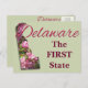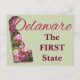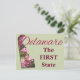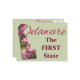 In 1953, the Peach Blossom was named as the official State Flower of Delaware. The Peach Blossom symbolizes longevity or the desire for long life, the sweetness of life and loving life. In the late 1800's, Delaware's peach orchards contained nearly a million peach trees, yielding a crop worth thousands of dollars at that time. Though most of us think of Georgia or South Carolina, at one time, Delaware was known as the "Peach State". Unfortunately, in the latter part of the 19th century, a peach blight brought collapse to the industry and, in the early 1900's, many peach farmers faced bankruptcy. In North Carolina, we're not nearly so far north as Delaware and we have roughly twenty peach trees on the property. They are around five or six years old and we have yet to harvest the first peach. In our case, false springs would bring on early budding only to have a subsequent frost kill any developing fruits. Though I am still hopeful, I have come to regard ours as "ornamental" trees. But this design is not just a tribute to peaches or their blooms, it also pays homage to our FIRST state, Delaware. It's pretty distinctive, being the first official state of the United States. In terms of size, Delaware is the 49th largest (out of 50) or the 2nd smallest state in the union. At it's outer edges, Delaware is 96 miles long and 35 miles wide. Though geographically small, Delaware has given this country many gifts and many famous people. Though born in Pennsylvania, Former Vice-President Joe Biden hailed from Delaware. Bob Marley's son, Stephen, was born in Wilmington as was actress Elisabeth Shue and actress Valerie Bertinelli. This delightful design, celebrating the VERY FIRST official state in the United States, offers an outline of the state of Delaware, filled with their state flowers, lovely Peach Blossoms. These delightful postcards can be purchased before your vacation so you lose no time searching for them and can concentrate on all the beauty around you. Pair with the matching postage stamps for even more impressive presentation.