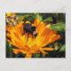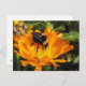 Black and yellow "bumble bee" browsing in the center of an orange calendula flower. May be a Carpenter bee.