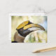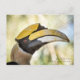 A portrait image of a magnificent Great Hornbill (Buceros bicornis) set against a bright green and yellow tropical background at the Reid Park Zoo in Tucson, Arizona.